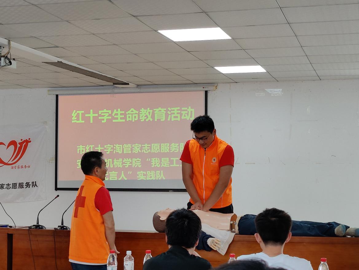 夏天气温升高,心脏负荷加重,是心梗猝死的高发季节。为保障社区居民生命安全,6月22日,437ccm必赢国际版“我是工大代言人”暑期实践队来到马鞍山市花山区宁芜村,开展了“对生命的承诺,对爱的奉献”应急救护培训。