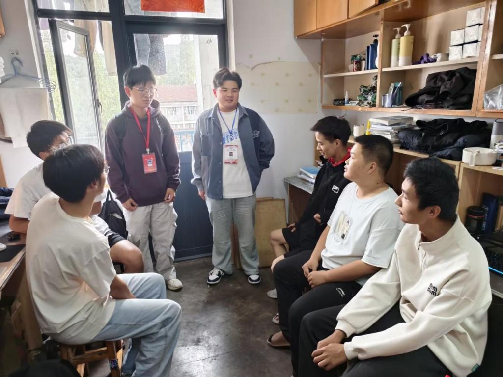 活动中,党员们深入新生宿舍,细致了解同学们在生活起居、校园适应等方面的情况,并针对宿舍报修、校园卡使用等实际问题提供耐心解答,筑牢新生入学的“生活保障线”。在学业与发展方面,党员们结合车辆工程专业特点,分享了课程学习经验与专业前景,鼓励新生尽早树立目标、夯实专业基础。他们还详细解读了评奖评优、推免政策等内容,从评选原则、申报条件、考核标准到流程规范,进行全面细致的讲解,鼓励同学们以德为先、勤学善思、勤学笃行、全面发展。